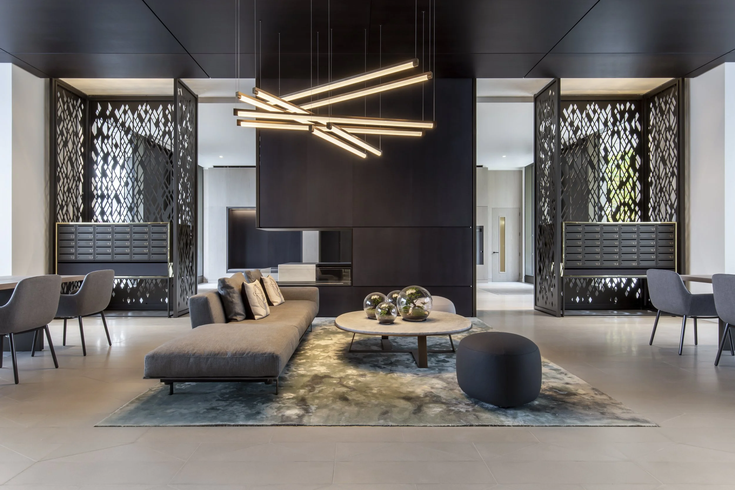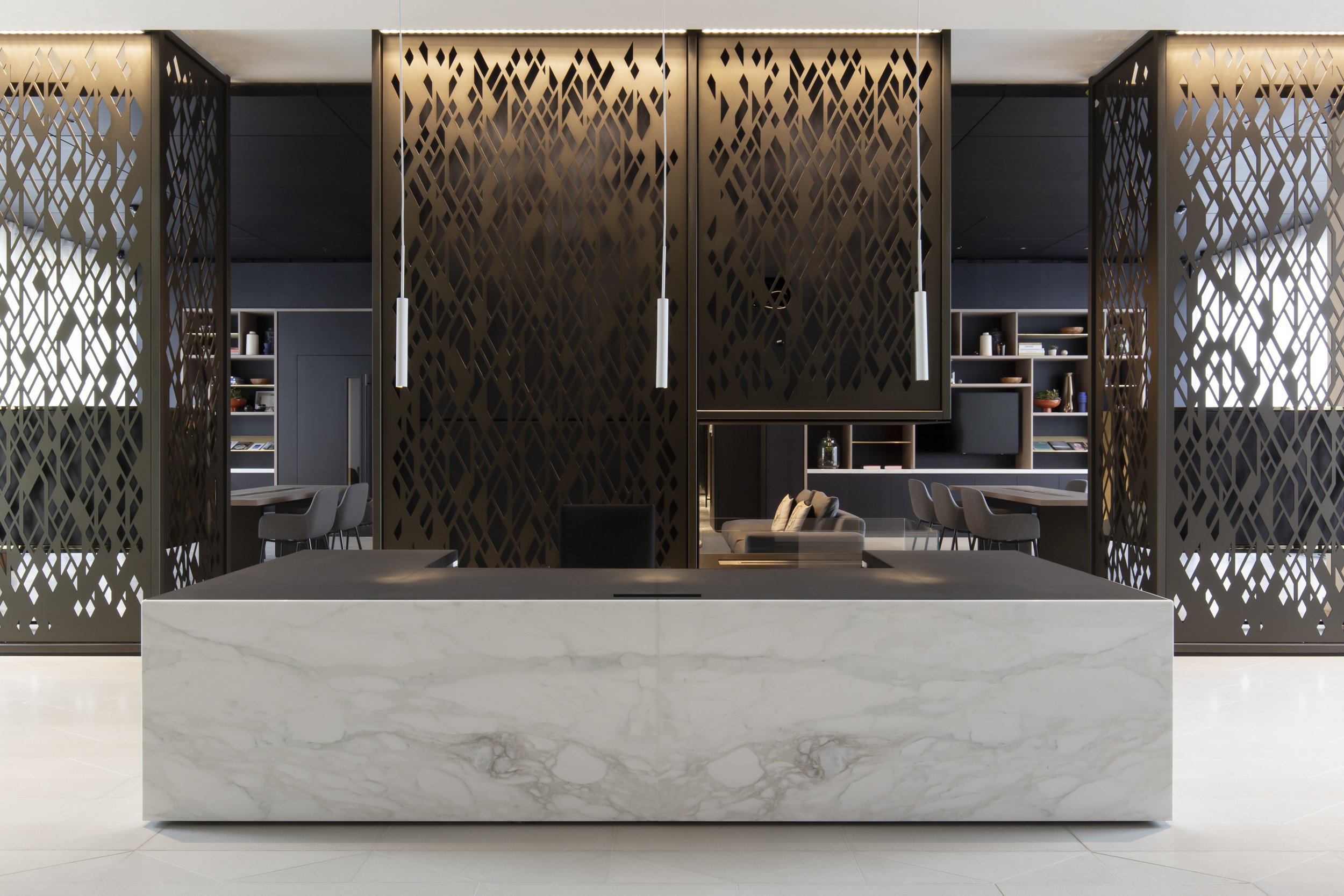 The technical design was developed in BIM which enabled WGI to successfully coordinate the scheme in particular between the complex façade arrangements and the very high end, bespoke interiors. It involved close design development and coordination of a number of building elements with specialist subcontractors and suppliers including a triple glazed system, curtain walling, laser cut ornamental metal screens, pre-cast cladding, bespoke joinery and fittings throughout, the M&E installation, feature staircases and automated rooflight access to roof terraces.